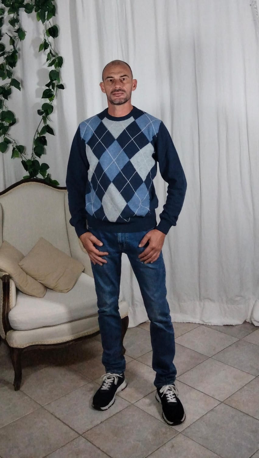 Maglione Uomo Girocollo a Rombi Scozzese – 5% Cashmere 30% Lana 65% Nylon