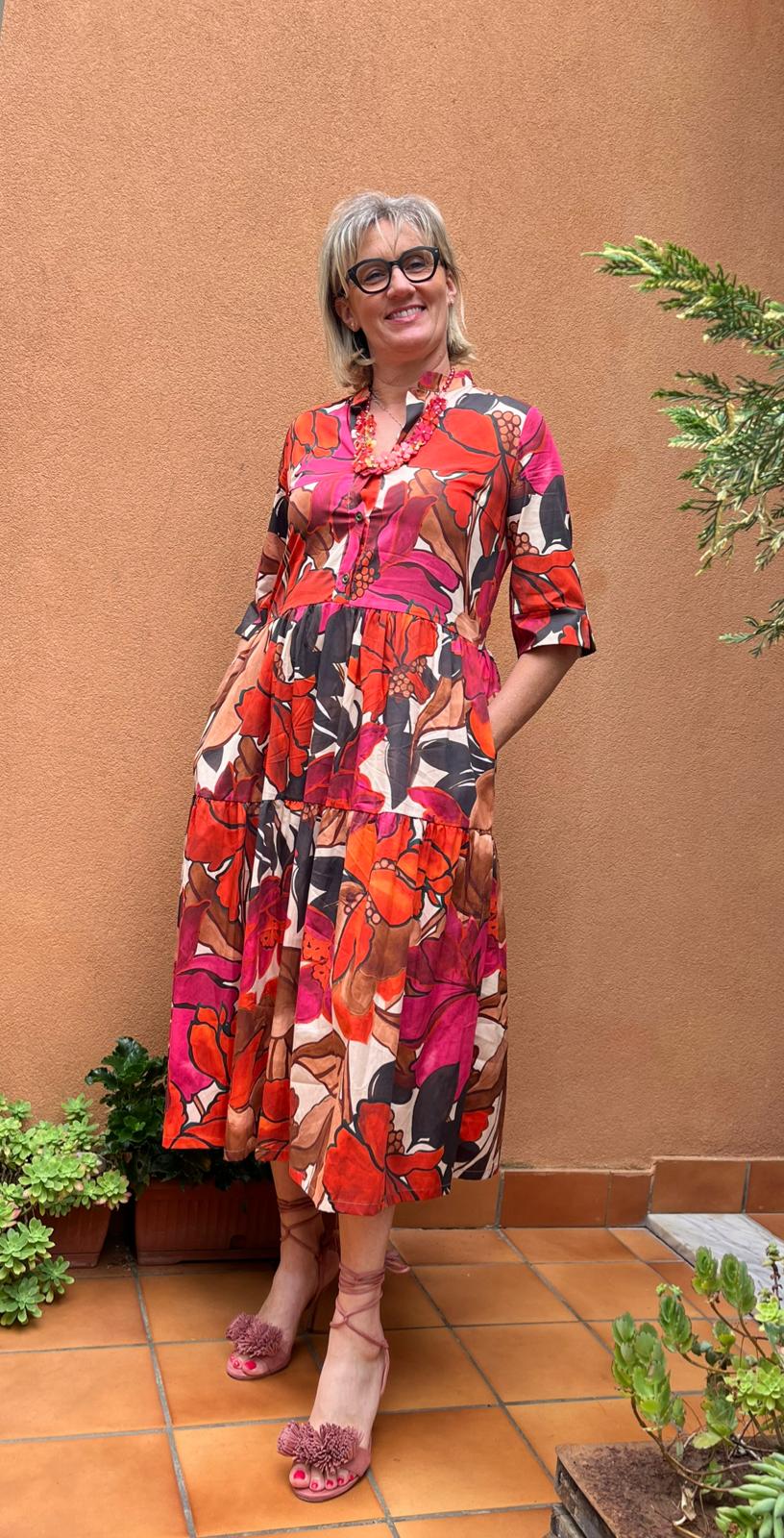 Vestiti fiore in 100% cotone manica a tre quarti e tasche